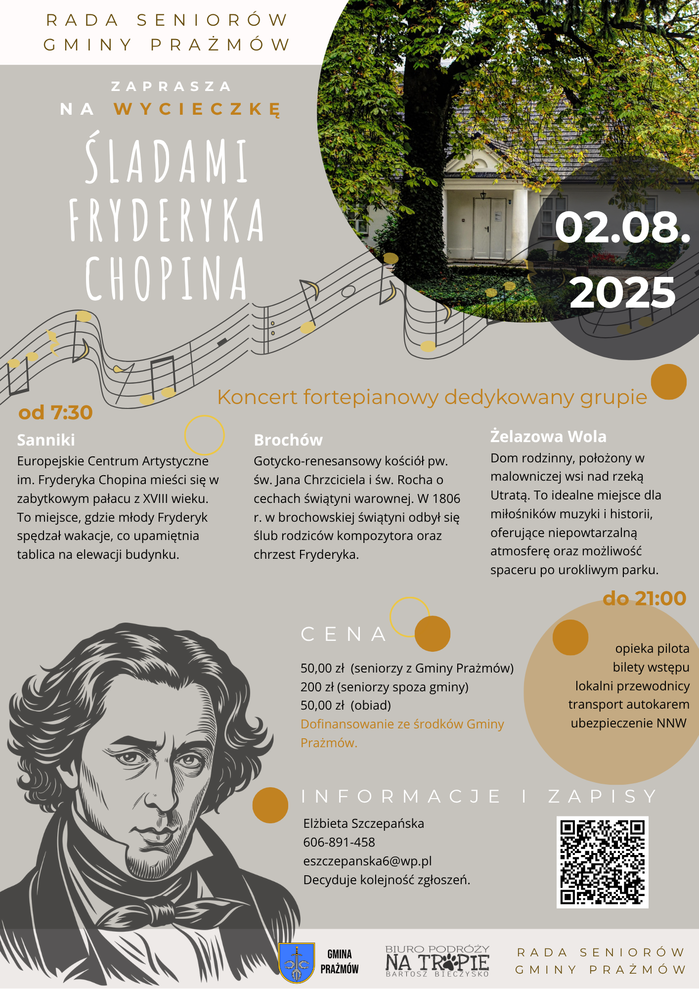 Rada Seniorów Gminy Prażmów zaprasza do udziału w wycieczce "Śladami Fryderyka Chopina".
